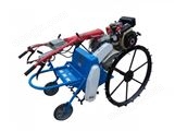 本機(jī)器包括機(jī)架、可調(diào)高低扶手,機(jī)架上設(shè)有(風(fēng)冷或水冷)柴油機(jī)或汽油機(jī)、機(jī)架和扶手上設(shè)置有變速箱,變速箱的輸出軸上設(shè)置有能夠沿軸移動(dòng)的驅(qū)動(dòng)輪或鏈軌.傳動(dòng)方式主要有:全齒輪傳動(dòng)、皮帶傳動(dòng)、鏈條傳動(dòng)三種傳動(dòng)方式.該機(jī)具有重量輕,油耗低、相對(duì)功率大,結(jié)構(gòu)緊湊、機(jī)動(dòng)性強(qiáng)、操縱輕便靈活的特點(diǎn)。可爬坡、越埂、階梯性強(qiáng)。
