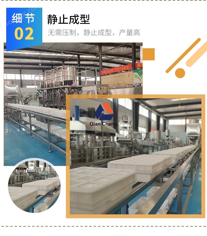 3、豆腐箱的移動(dòng)采用氣動(dòng)步進(jìn),運(yùn)行平穩(wěn),清潔衛(wèi)生。豆腐質(zhì)量穩(wěn)定,重量誤差小。