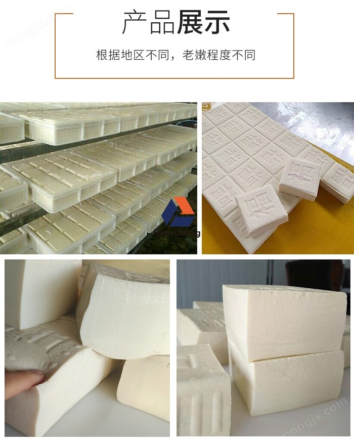 豆腐機是把大豆做成豆腐,豆漿等一些豆制食品的機械。豆腐機由分離式磨漿機、盛漿桶、盛渣桶、蒸汽包等組成,可同時生產豆漿、豆花、各式豆腐等多種豆制品,還可以與其他設備和工藝配套生產更多的豆制品。