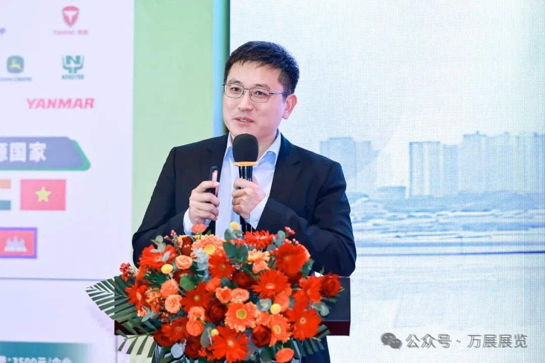 論壇內(nèi)容持續(xù)升級細化,進一步提振了參會企業(yè)的出海信心。作為此次論壇的主要承辦單位,萬展展覽、犀牛中國農(nóng)機出口網(wǎng)總經(jīng)理程世強給大家分享了外貿(mào)參展經(jīng)驗,為農(nóng)機企業(yè)出海提供實操指引。程世強指出,展會是企業(yè)拓展外貿(mào)的重要途徑,尤其對于剛起步的企業(yè),通過參展能深入了解市場需求、尋找合作伙伴。程世強表示:萬展深耕海外展會19年,每年組織110余場展會,農(nóng)機板塊占比超30%,足跡覆蓋48國100余場農(nóng)機展。程世強再三強調(diào),參加海外展企業(yè)無需過度糾結(jié)人員與語言問題,應(yīng)優(yōu)先走出國門了解市場需求。針對農(nóng)機企業(yè),程世強著重推薦巴西、南非、意大利等核心展會,指出不同展會適配產(chǎn)品差異,如巴西展適合整機裝備,意大利展適配園林機械。