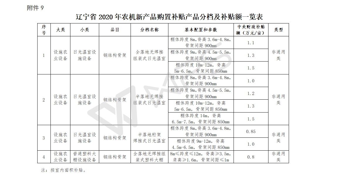 《實(shí)施方案》明確,產(chǎn)品補(bǔ)貼范圍為全省范圍內(nèi)(不含大連市)涉農(nóng)縣(市、區(qū))。產(chǎn)品補(bǔ)貼對(duì)象為從事農(nóng)業(yè)生產(chǎn)的購置鋼結(jié)構(gòu)骨架的個(gè)人或農(nóng)業(yè)生產(chǎn)經(jīng)營組織。其中農(nóng)業(yè)生產(chǎn)經(jīng)營組織包括農(nóng)村集體經(jīng)濟(jì)組織、農(nóng)民專業(yè)合作經(jīng)濟(jì)組織、農(nóng)業(yè)企業(yè)和其他從事農(nóng)業(yè)生產(chǎn)經(jīng)營的組織。