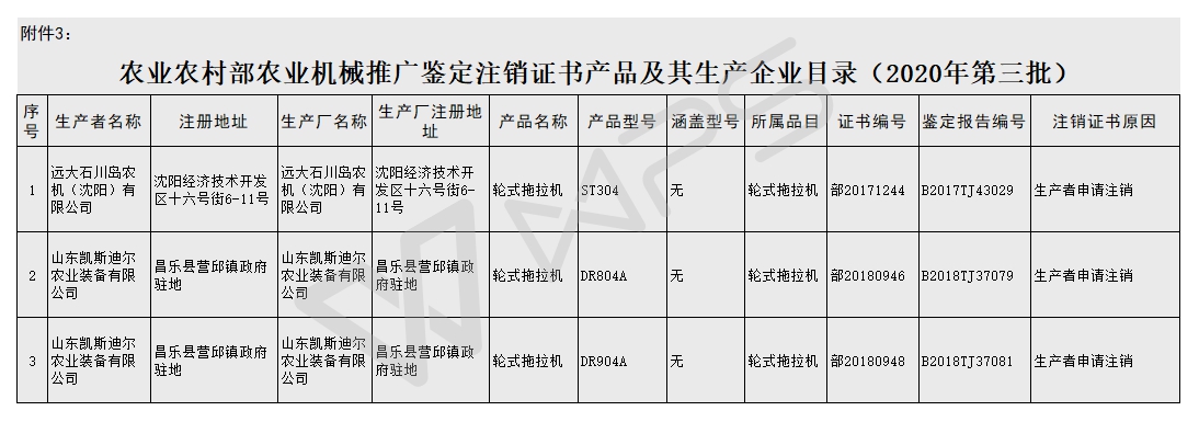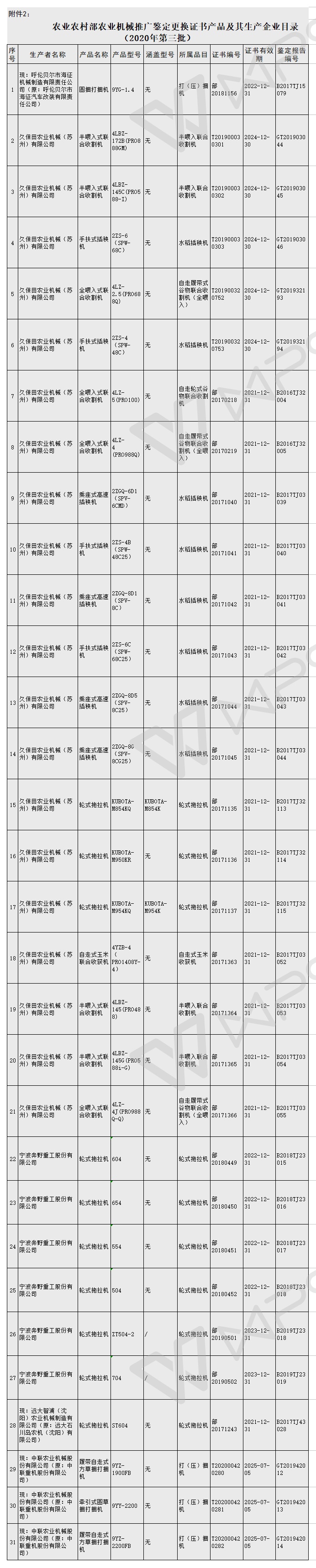 關于2020年第三批國家支持的農機推廣鑒定結果的通報