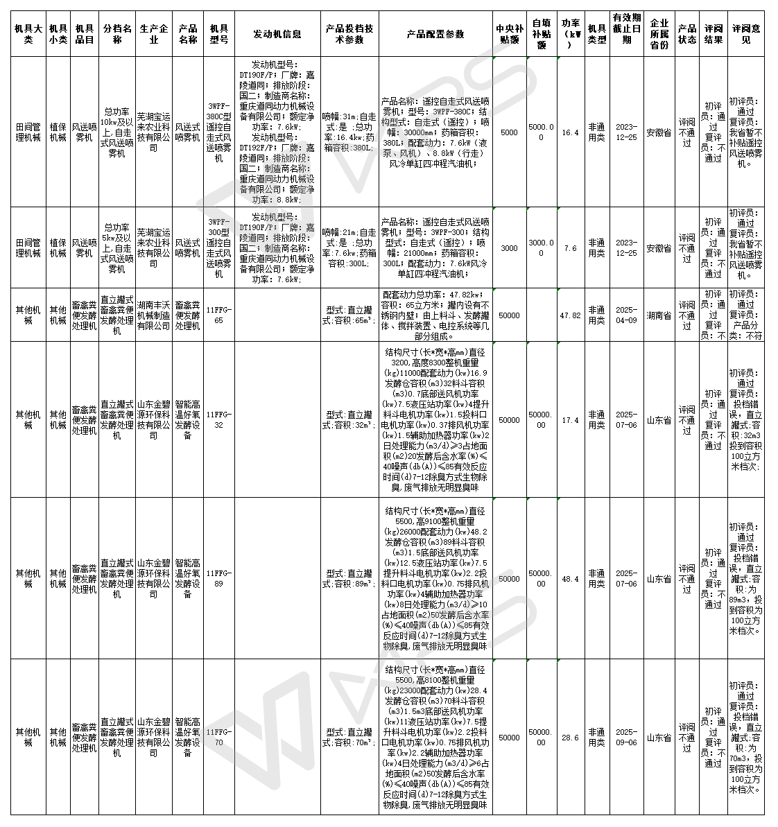 2.河北省2020年第三批農機購置補貼投檔評審(不通過)產品公示表