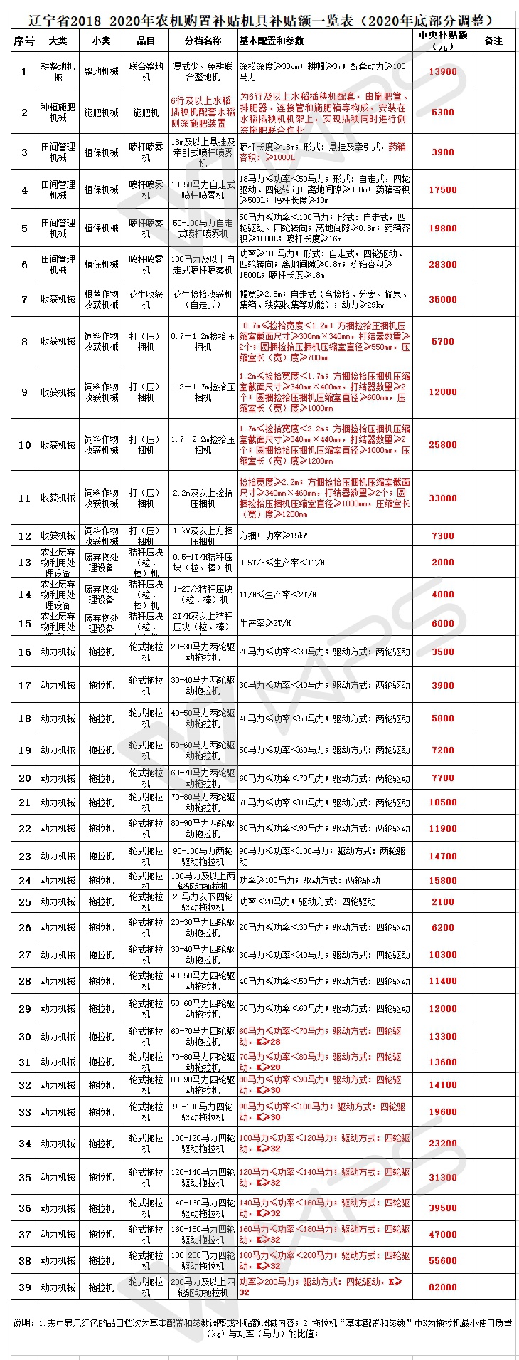 遼寧省關于調整2020年部分補貼農機具參數配置及補貼額的公示